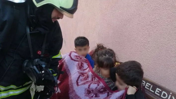 Kocaeli'nin Derince ilçesinde evde çıkan yangında 3 çocuk ve anneleri büyük korku yaşadı. Anne çocuklarını alıp dışarı kaçarken, çocuklar soğuktan üşüyünce komşuların verdiği battaniyeye sarıldı.