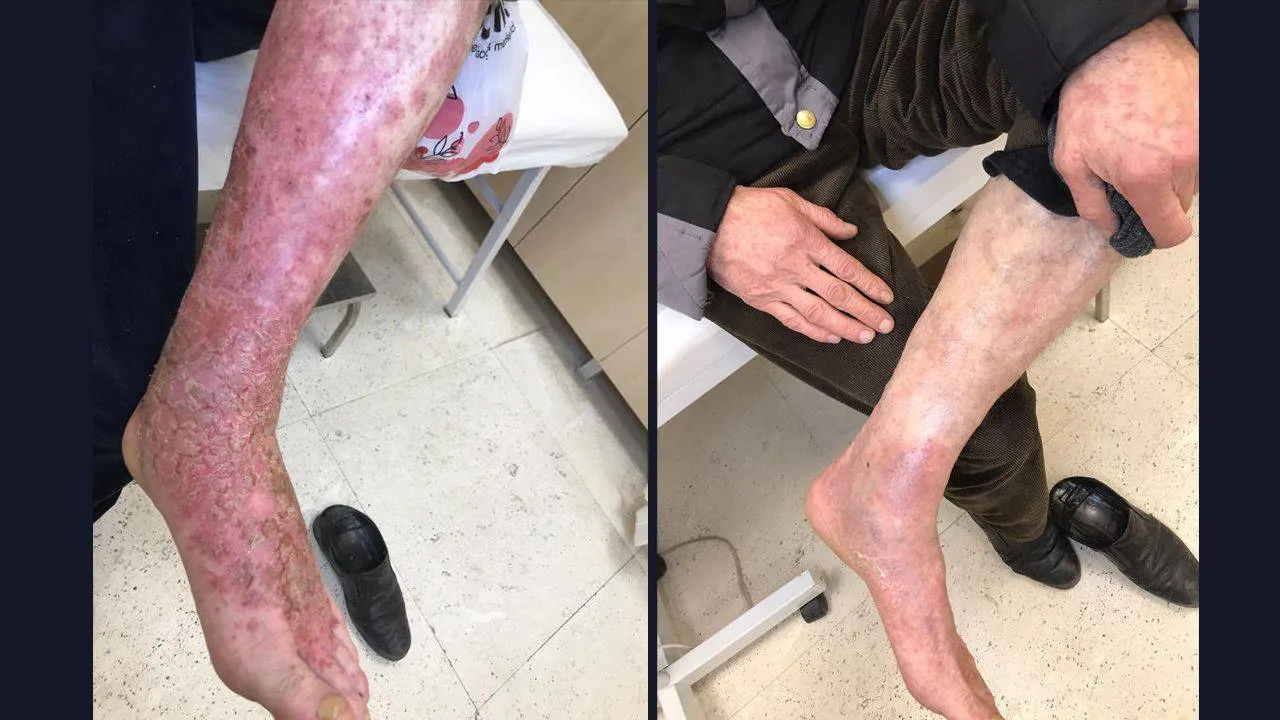 Özel Silivri Kolan Hastanesi Cildiye uzmanı Uzman Doktor Vahit Mültecihak, tedavi sürecini hakkında bilgiler vererek “Sol bacakta yaygın kızarıklık, kabuklanma, sulanma şikâyeti ile gelen hastamızın dermatolojik Muayenesinde sol bacakta yaygın varis paketleri saptanarak, tüm bacağı etkileyen eritemli, kurutlu, prülan sızıntılı plaklar mevcuttu. Hastamıza Staz Dermatit tanısı ile sistemik antibiyotik +topikal orta patent steroid tedavisi başlandı. Tedavini 9.gününde bariz iyileşme görüldü.” dedi.