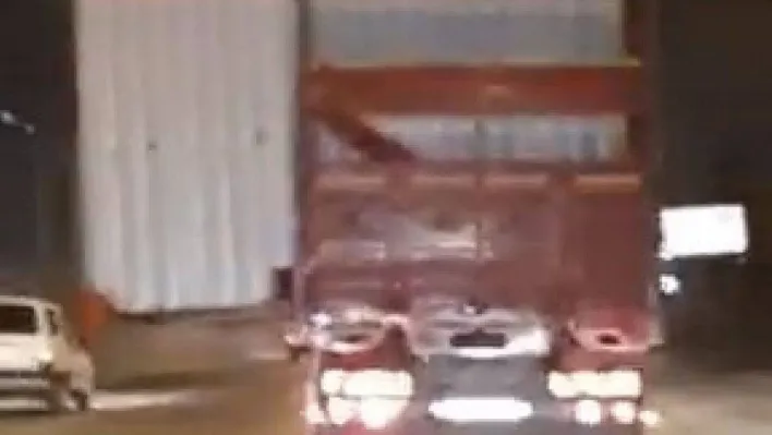Bursa'da konteyner ev yüklü kamyonetin tehlikeli yolculuğu cep telefonu kamerasına yansıdı.