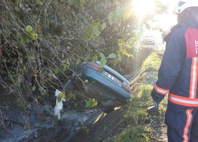 Kontrolden Çıkan Araç Şarampole Uçtu