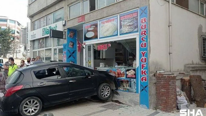 Silivri'de sürücüsünün direksiyon hakimiyetini kaybettiği otomobil yufkacıya daldı. İşyeri ve araçta maddi hasar meydana gelirken sürücü kazayı şans eseri yara almadan atlattı.