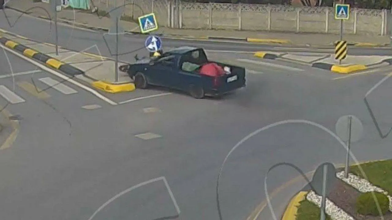 İlk görüntüde, ışıklı kavşağa hızla gelen bir otomobilin kontrolden çıkıp refüjü aşması ve karşı şeride geçerek reklam panosuna çarpması yer aldı. Gece saatlerinde meydana gelen kazada yolun boş olması ise daha büyük bir kaza ihtimalinin önüne geçti. Diğer görüntüde ise kavşaktan dönmeye çalışan hafif ticari araç ile motosikletin çarpışması ve motosiklet sürücüsünün yere savrulduğu anlar yer aldı.