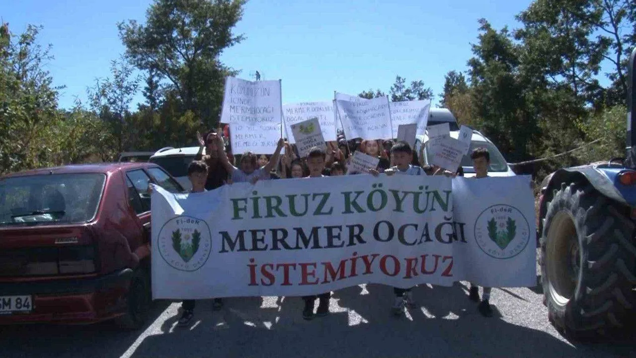 Bursa'nın Orhaneli ilçesine bağlı Firoz köyü yakınlarına yapılan mermer ocağına karşı köy sakinleri eylem yaptı.