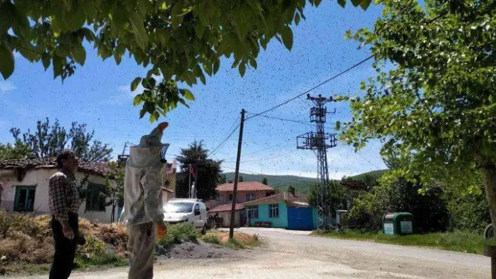 Tekirdağ'ın Süleymanpaşa ilçesindeki Ormanlı Köyünde yaşanan kısa süreli arı istilasını fırsata çevirdiler. Havada uçuşan arıları oğul otuyla ağaca toplayıp arı kovanına aldılar.