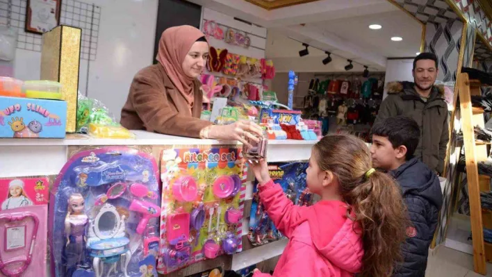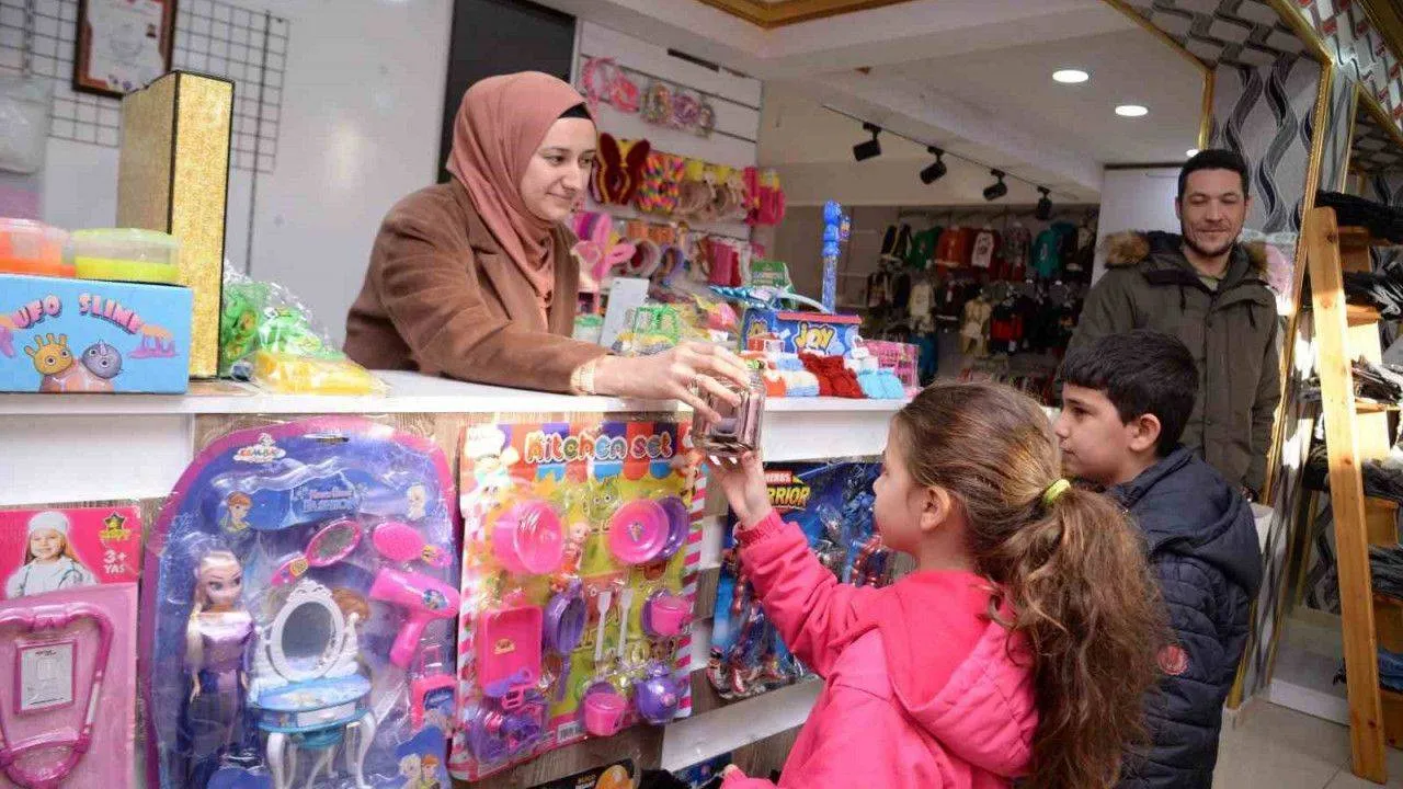 Berat ve Defne yaptıkları alışveriş sonrası aldıkları kıyafetleri depremzedelere ulaştırmak üzere Kahramankazan Belediyesi yetkililerine teslim ettiler.