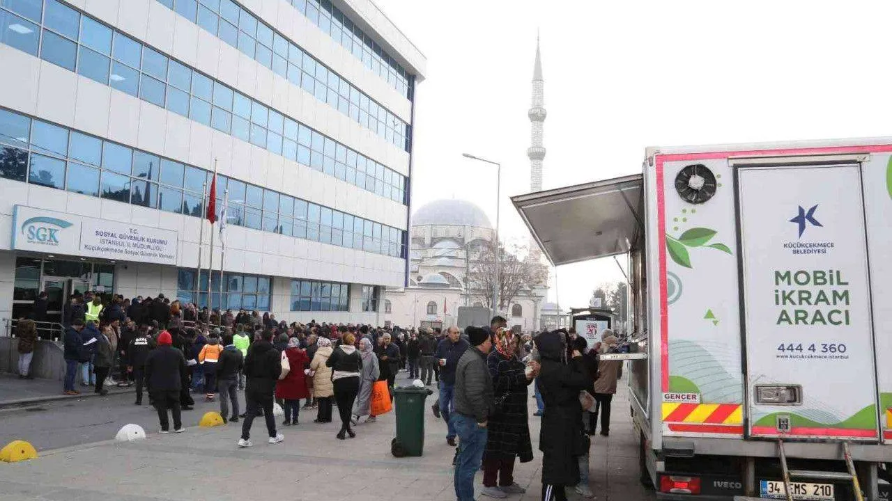Vatandaşların soğuktan etkilenmeden işlemlerini devam etmesi için Küçükçekmece Belediyesi, mobil ikram aracıyla su ve içecek ikramında bulundu.