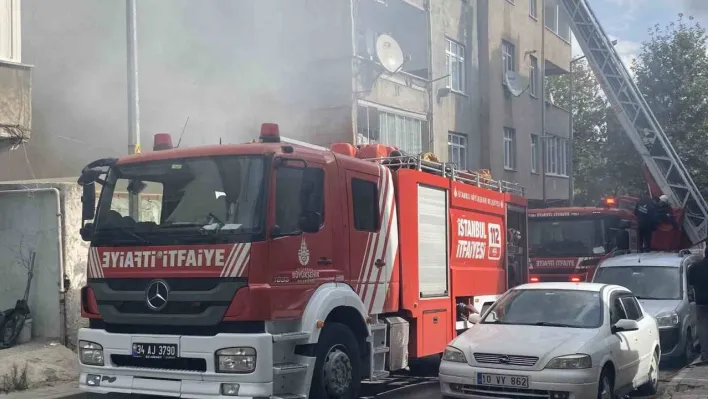 Küçükçekmece'de 3 katlı binanın çatı katı alev alev yandı