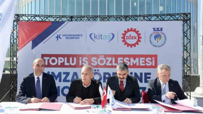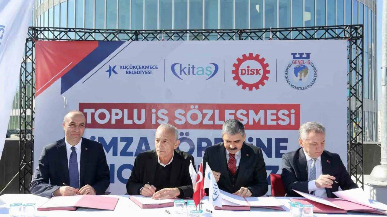 Küçükçekmece Belediye ile DİSK Genel İş Sendikası arasında tüm çalışanları kapsayan yüzde 76 zam 'Toplu İş Sözleşmesi Ek Protokolü' törenle imzalandı. İşçiler, Başkan Kemal Çebi ile halay oynayarak zammı kutladı.