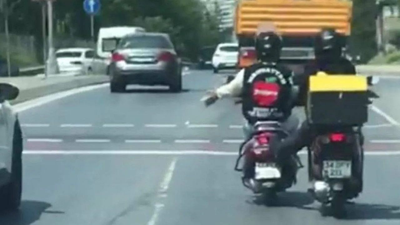 Olay dün öğle saatlerinde İkitelli Olimpiyat stadı yolu üzerinde meydana geldi. Görenleri şaşkına çeviren olayda motosiklet sürücüsü benzini biten başka bir motosikleti ayağıyla iterek benzin istasyonuna kadar götürmeye çalıştı. Vatandaşların şaşkın bakışlarına aldırış etmeden yolculuk yapan şahıslar hem kendilerini hem de trafikteki diğer sürücüleri tehlikeye attı. Yaşanan olay başka bir sürücü tarafından ise cep telefonu ile kaydedildi. Bir süre devam eden yolculuk esnasında motosiklet sürücüsünün sol tarafından geçen diğer sürücüleri dikkatli olmaları konusunda eliyle işaret yaparak uyarması dikkat çekti.