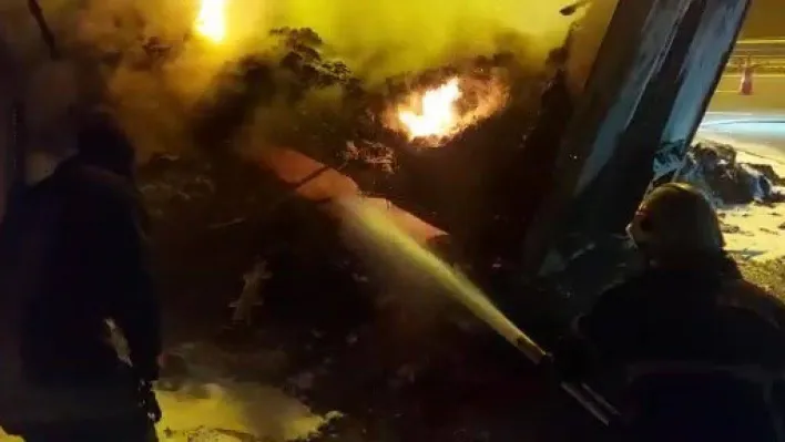 Kocaeli Kuzey Marmara Otoyolu'nda seyir halindeyken alev alan kumaş yüklü tır küle döndü.