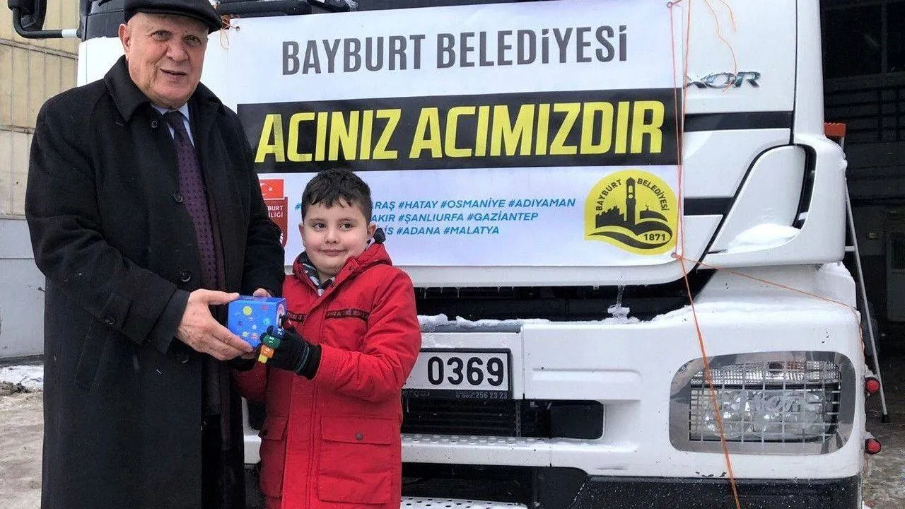 Bayburt Belediyesinin başlattığı ve Bayburt halkının yoğun ilgi gösterdiği kampanyada şimdiye kadar 25 kamyon yardım malzemesi yola çıkarken Bayburtlu çocuk Ömer Gökalp Görgülü, kumbarasında biriktirdiği paraları bölgeye ulaştırılması için Bayburt Belediye Başkanı Hükmü Pekmezci’ye teslim etti. Minik Ömer’in bu hareketi kalpleri ısıtırken duygusal anlar yaşandı.