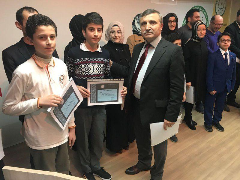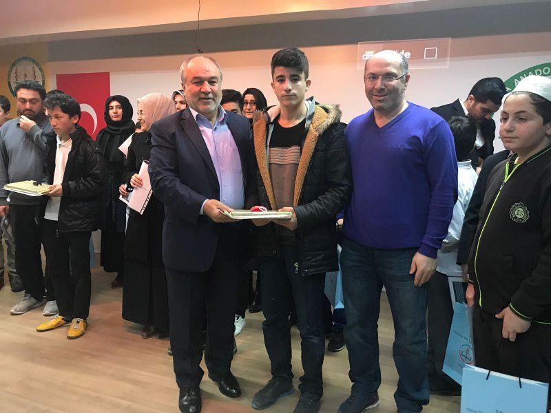 Dereceye giren öğrencilere hediyelerini Bakanlık Müşaviri Halis İşler, İlçe Milli Eğitim Müdürü Sayın Ahmet Ay ve İlçe Müftüsü Sayın İdris Çatmakaş takdim etti.