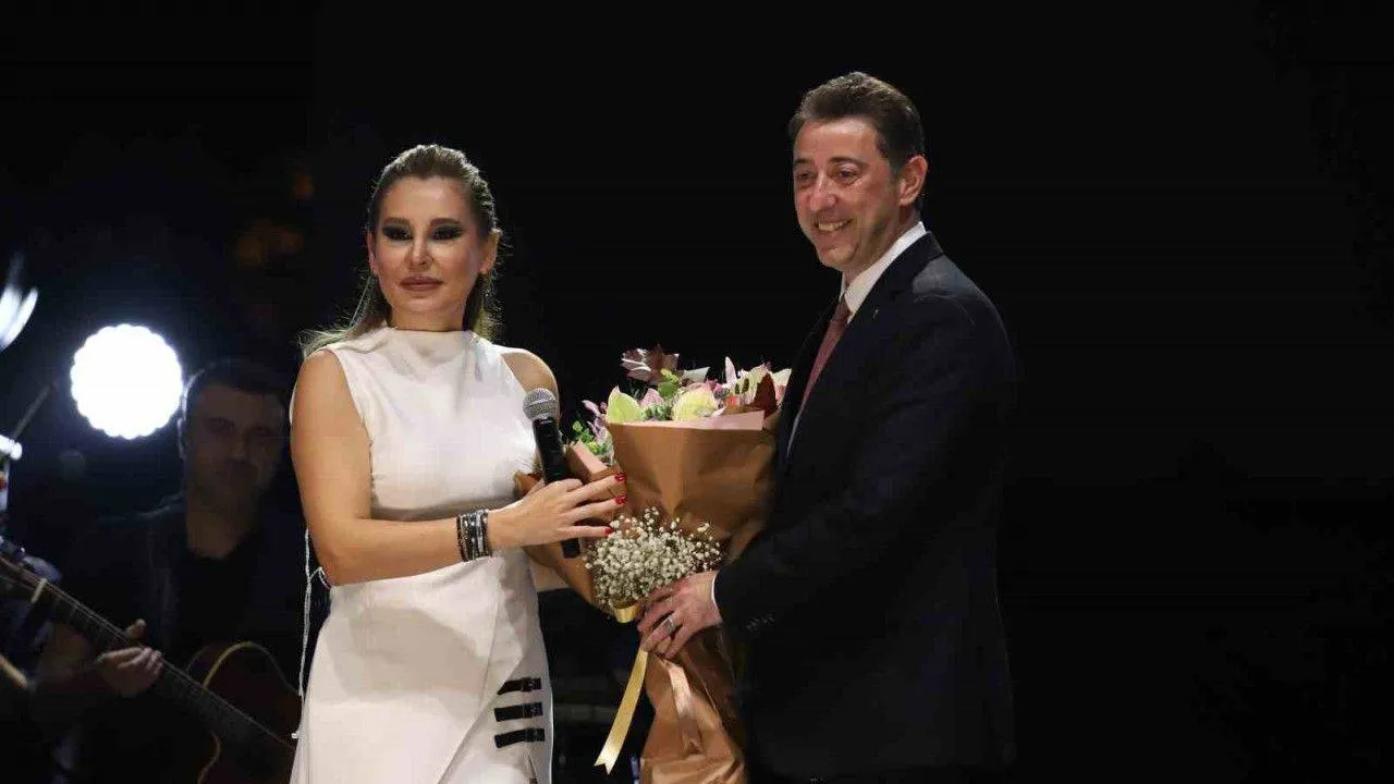 Ardından Bandırma Belediye Başkanı Av. Tolga Tosun tarafından Sanatçı Funda Arar’a plaket ve çiçek takdim edildi.