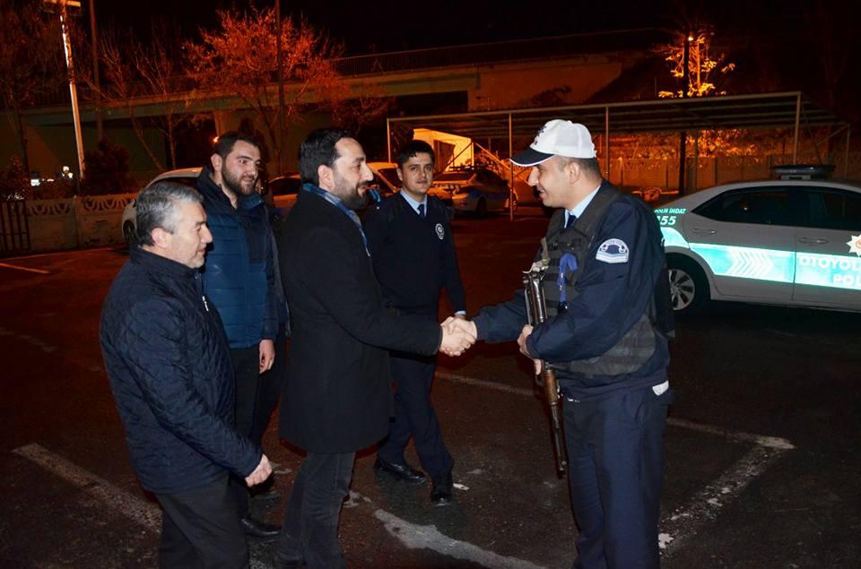 AK Parti Silivri ilçe başkanı Rıfat Kutlu, bölge trafik denetleme istasyonunda kurulan noktada denetim yapan polisleri ziyaret etti.