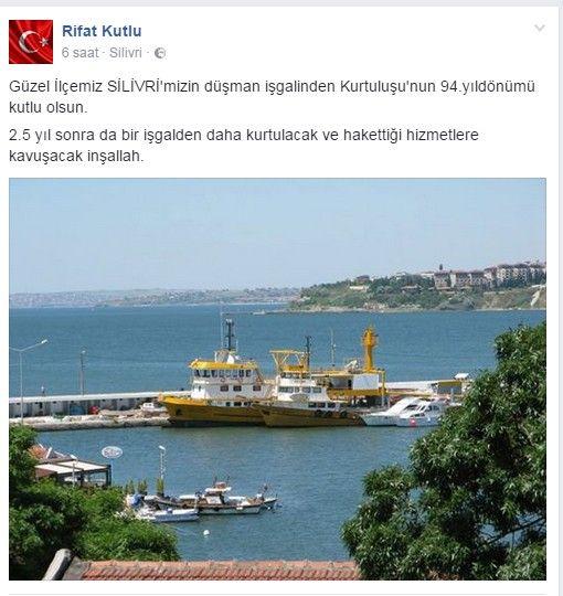 Kutlu’nun bu kutlama mesajının ardından yazdığı ve Belediye Başkanı Özcan Işıklar’ı işgalcilere benzeterek, Mart 2019 seçimlerinden sonra Silivri’nin hak ettiği hizmete kavuşacağını söylemesi hayli dikkat çekti: “2.5 yıl sonra da bir işgalden daha kurtulacak ve hakettiği hizmetlere kavuşacak inşallah.”
