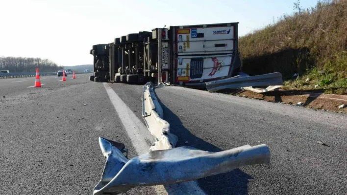 Kuzey Marmara Otoyolu Kocaeli geçişinde sebze ve meyve yüklü tır devrildi. Yaralanan sürücü hastaneye kaldırıldı.