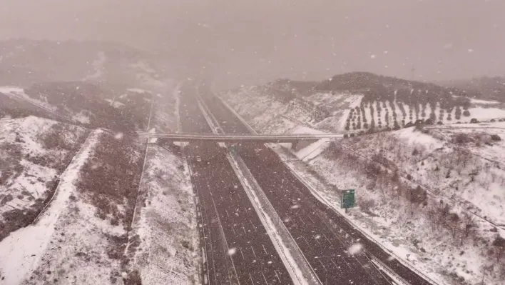 Kuzey Marmara Otoyolu'nda kar yağışı havadan görüntülendi