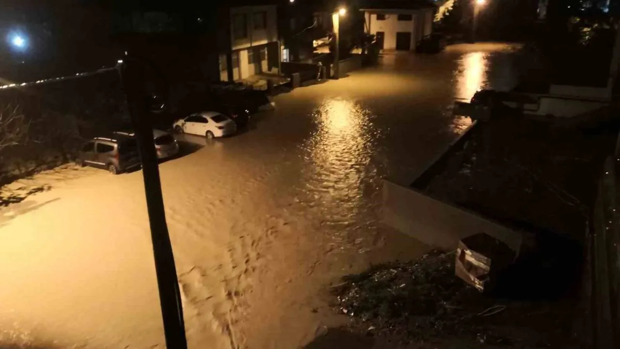 Çanakkale’nin Lapseki ilçesinde akşam saatlerinden itibaren başlayan sağanak yağış nedeniyle caddeler göle döndü, evleri su bastı.