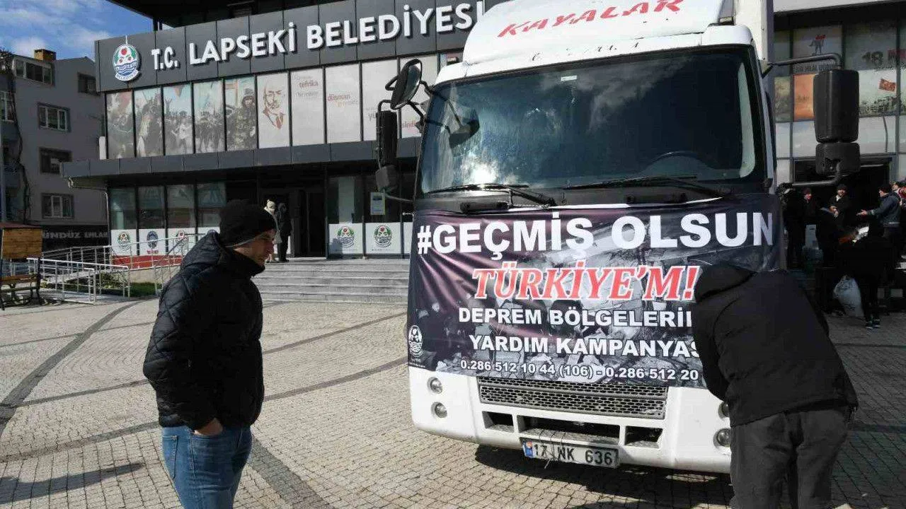 Kahramanmaraş merkezli ve 10 ili etkileyen 7,7 ve 7,6 büyüklüklerindeki depremlerin ardından Lapseki Belediyesi deprem bölgesinde afetzedelere gönderilmek üzere yardım kampanyası düzenlendi. Kampanyaya vatandaşlar büyük ilgi gösterdi. Lapseki Belediyesi hizmet binasına getirdikleri yardım malzemelerini yetkililere teslim etti. Toplanan iki kamyon dolusu yardım malzemesi deprem bölgesine gönderilmek üzere yola çıktı.