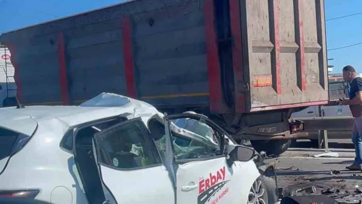 Lastiği patladığı için emniyet şeridine park eden kamyona otomobil çarptı