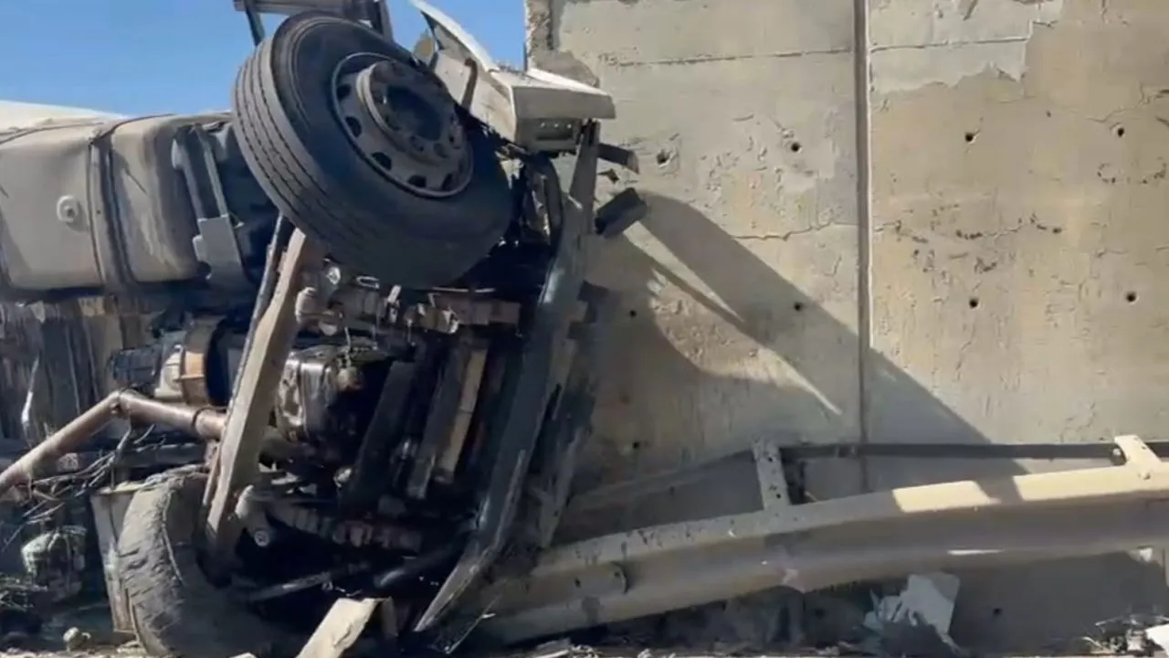 Lastiği patlayan kamyon köprü ayağına çarptı sürücü öldü