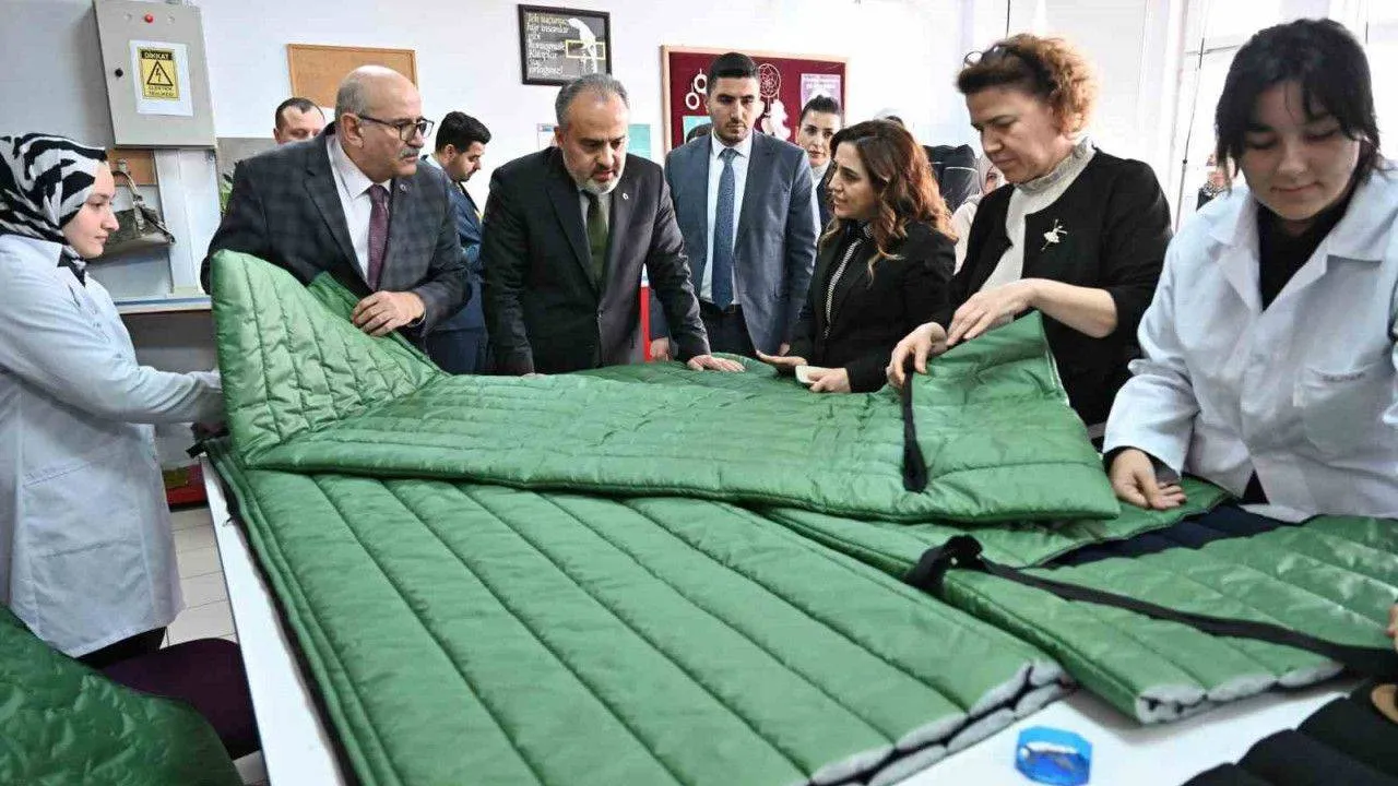 Bursa Büyükşehir Belediyesi Başkanı Alinur Aktaş, deprem bölgeleri için uyku tulumu ve çocuklar için oyuncak üretimi yapan lise öğrencileriyle buluşarak, gençleri tebrik etti. Bursalı gençlerin ürettiği uyku tulumlarıyla yüzlerce depremzedenin soğuktan korunacağını belirten Başkan Alinur Aktaş, zor günlerde herkesin birlik ve beraberlik içerisinde olmasının önemine değindi.