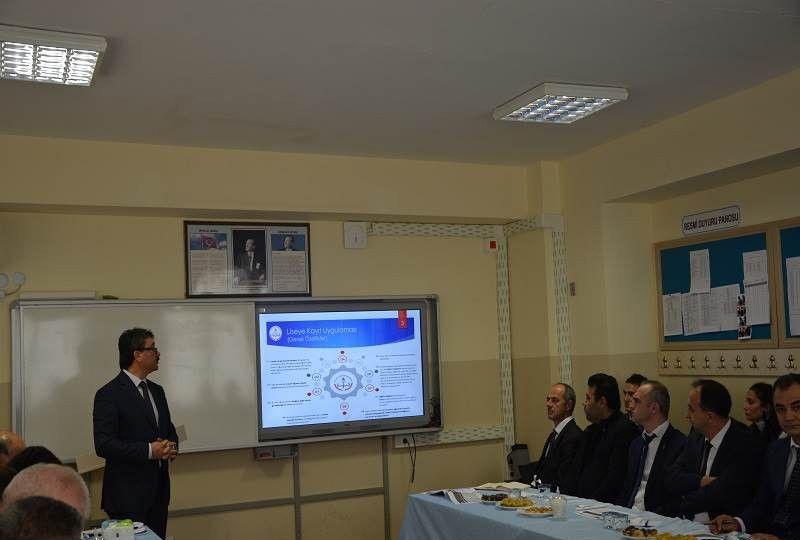 Liseye Kayıt Uygulaması bilgilendirme toplantısı Kaymakam Ali PARTAL, İlçe Milli Eğitim Müdürü Ahmet AY, İlçe Milli Eğitim Şube Müdürü Erdal ASLAN ve ortaokul müdürlerinin katılımı ile Ertuğrul Gazi Ortaokulunda gerçekleşti.