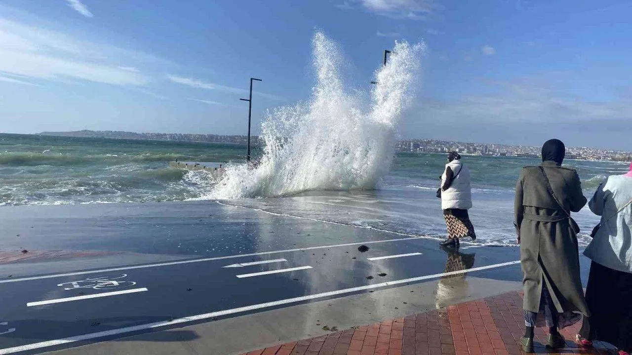 Şiddetli lodos bugün de kent genelinde etkisini göstermeye devam ediyor. Büyükçekmece’de dev dalgalar kıyıyı döverken güneşi gören vatandaşlar sahile indi. Hava sıcaklığı ise 20 derecelere kadar çıktı. Denizde oluşan dev dalgalarla fotoğraf çektirmek isteyen bazı vatandaşlar ise ıslanmayı göze alırken ortay çıkan manzara renkli görüntüler oluşturdu.