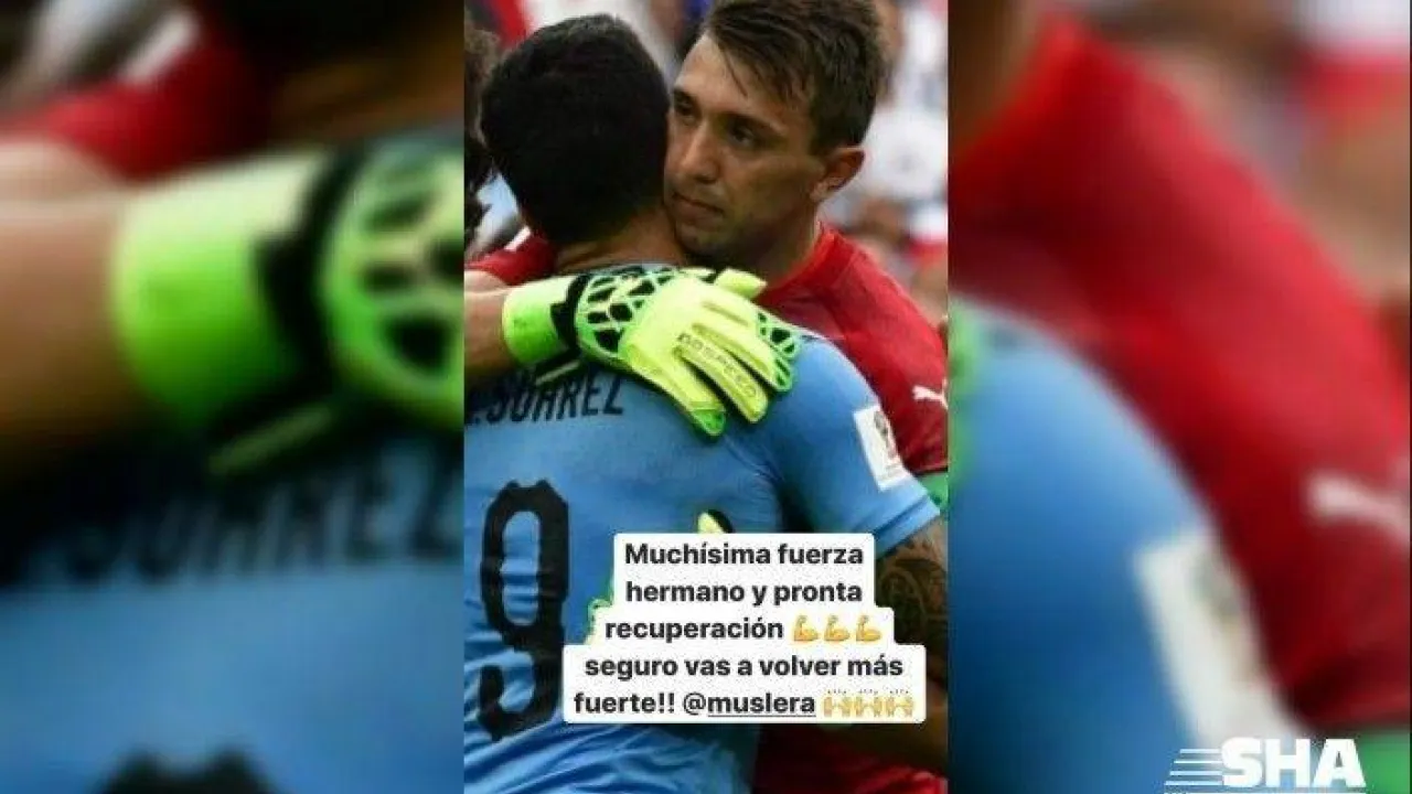 BARCELONA'NIN URUGUAYLI FUTBOLCUSU LUİS SUAREZ, VATANDAŞI OLAN GALATASARAY'IN URUGUAYLI FİLE BEKÇİSİ FERNANDO MUSLERA'NIN SAKATLIĞINDAN DOLAYI GEÇMİŞ OLSUN MESAJI YAYIMLADI.