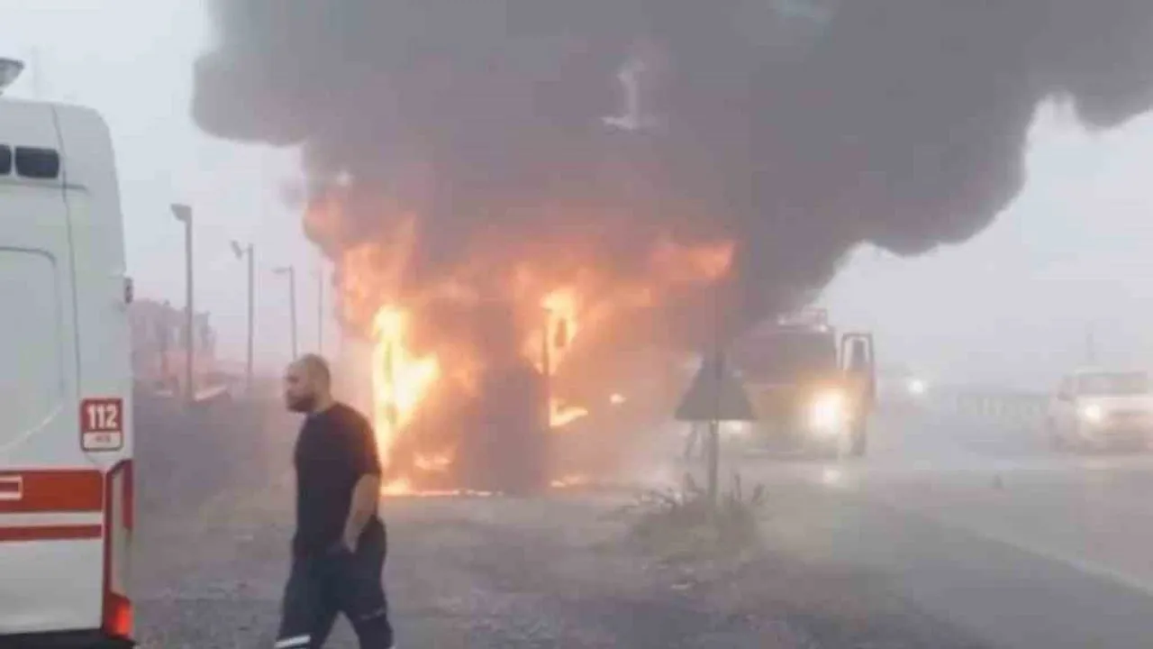 Lüleburgaz'da işçi servisi alev alev yandı: Facianın eşiğinden dönüldü