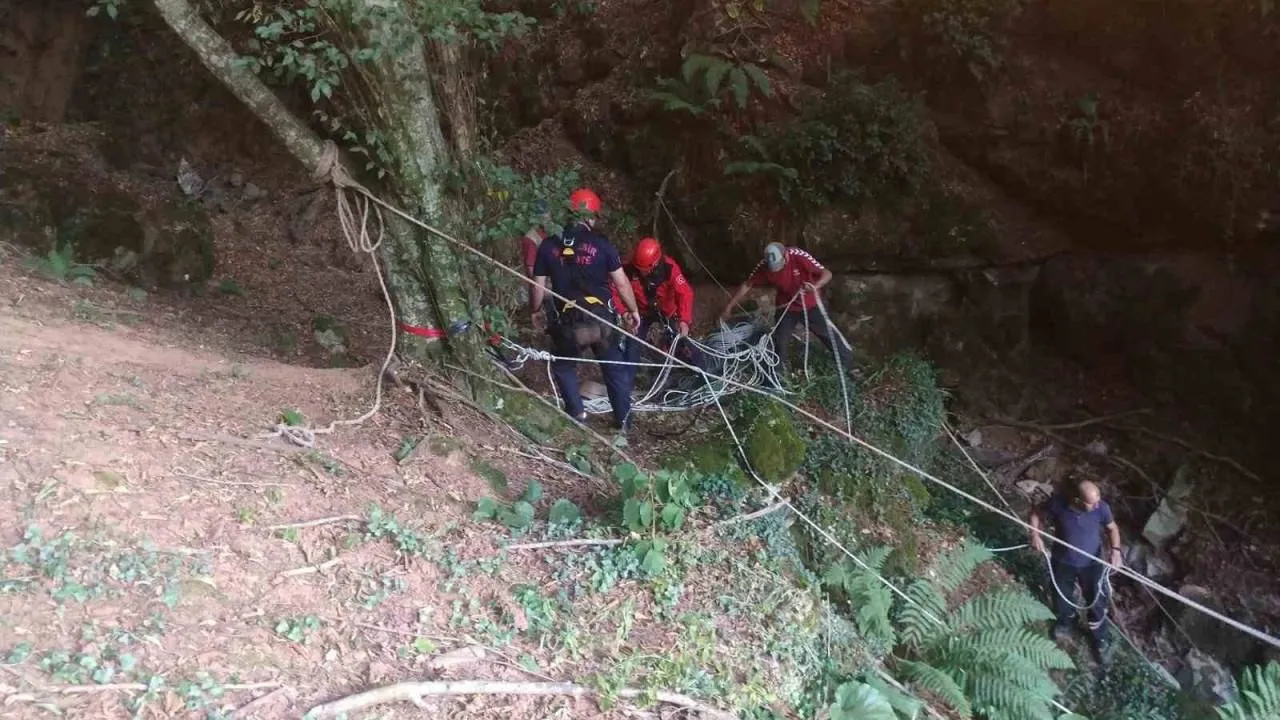 Balıkesir’in Manyas ilçesinde otlanırken mağaraya düşen dana itfaiye ekipleri tarafından kurtarıldı.