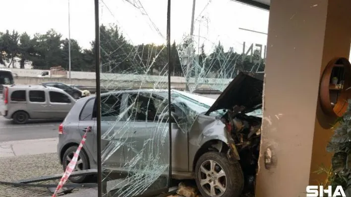 Beylikdüzü'nde makas atmak isteyen gencin kullandığı araç mobilya dükkanına girdi.