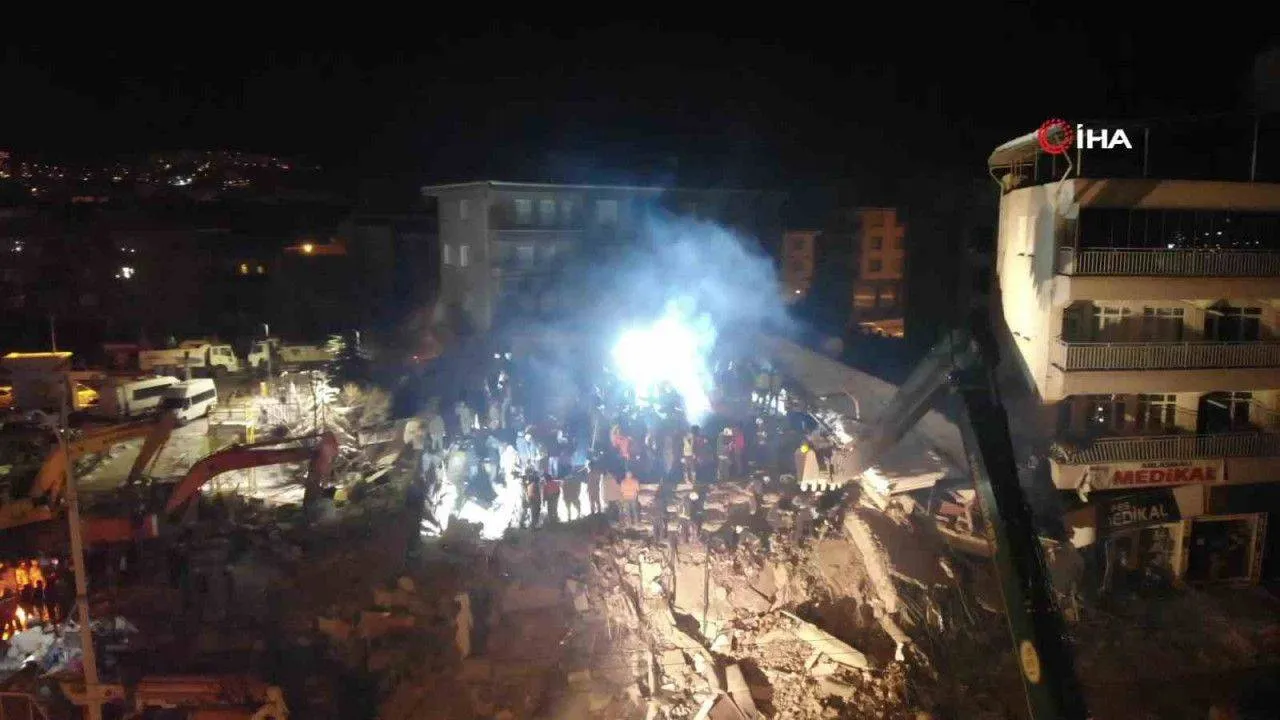 Malatya'da depremin 3. gününde gece çalışmaları havadan görüntülendi