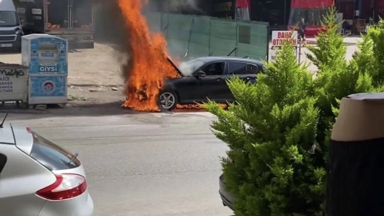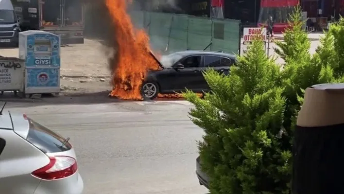 Aracın alevler içinde kaldığı o anlar cep telefonu kamerasıyla görüntülendi.