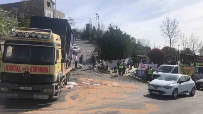 Maltepe'de sürücüsünün kontrolünden çıkan kasası su şişesi dolu kamyonet, yoldaki bir otomobile çarptı, ardından yol kenarında bulunan parkın girişindeki demir bariyerlere çarparak durdu. Kazada kamyonet sürücüsü hafif yaralandı.