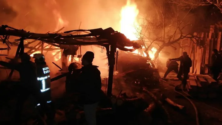 Marangozhanede çıkan yangın ahıra sıçradı, 4 büyükbaş telef oldu