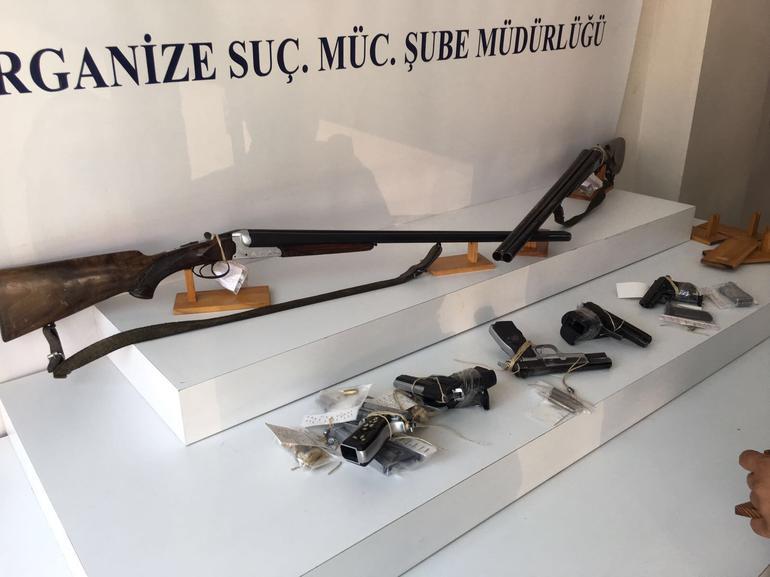 Soruşturma dosyası kapsamında; bir kısım şüphelilerin ev ve işyerlerinde mahkeme kararı uyarınca yapılan aramalarda 5 adet tabanca, 1 adet suikast silahı, 2 adet av tüfeği, 120 adet tabancalara ait fişek, 4 adet şarjör, 188 adet av tüfeği fişeği ele geçirildi.