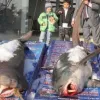 Balıkları 4 kişi yerinden dahi oynatamazken, işletme sahibi Kenan Balcı, "2 metre boyunda kuyrukları, 65 santimetre kanat açıklıkları var. Şu ana kadar böyle bir şey görülmedi. Dişleri çok sivri, çok keskin. Üst dişleri sivri, alt dişleri ise testere gibi" diye konuştu.