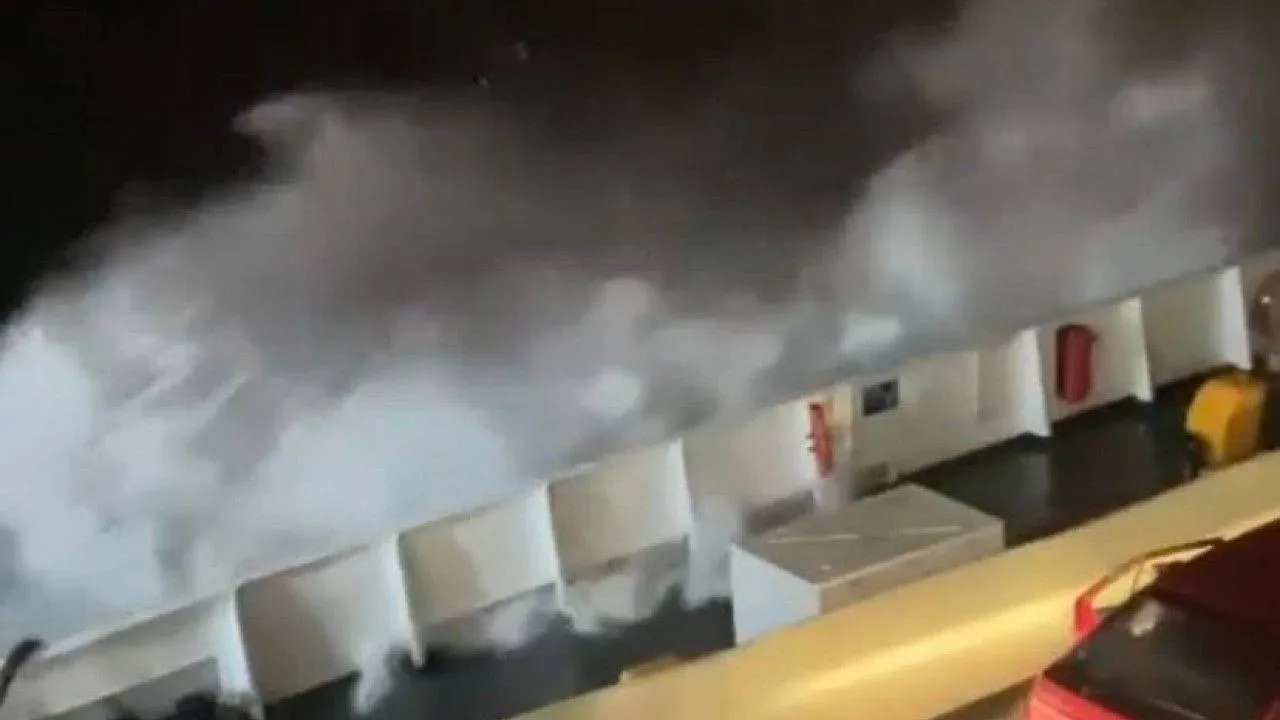 Marmara Denizi'nde etkili olan şiddetli rüzgar ve sağanak yağış sonrası İDO deniz feribotundaki arabalı yolcular metrelerce yükselen dalgalar sonucu zor anlar yaşadı.