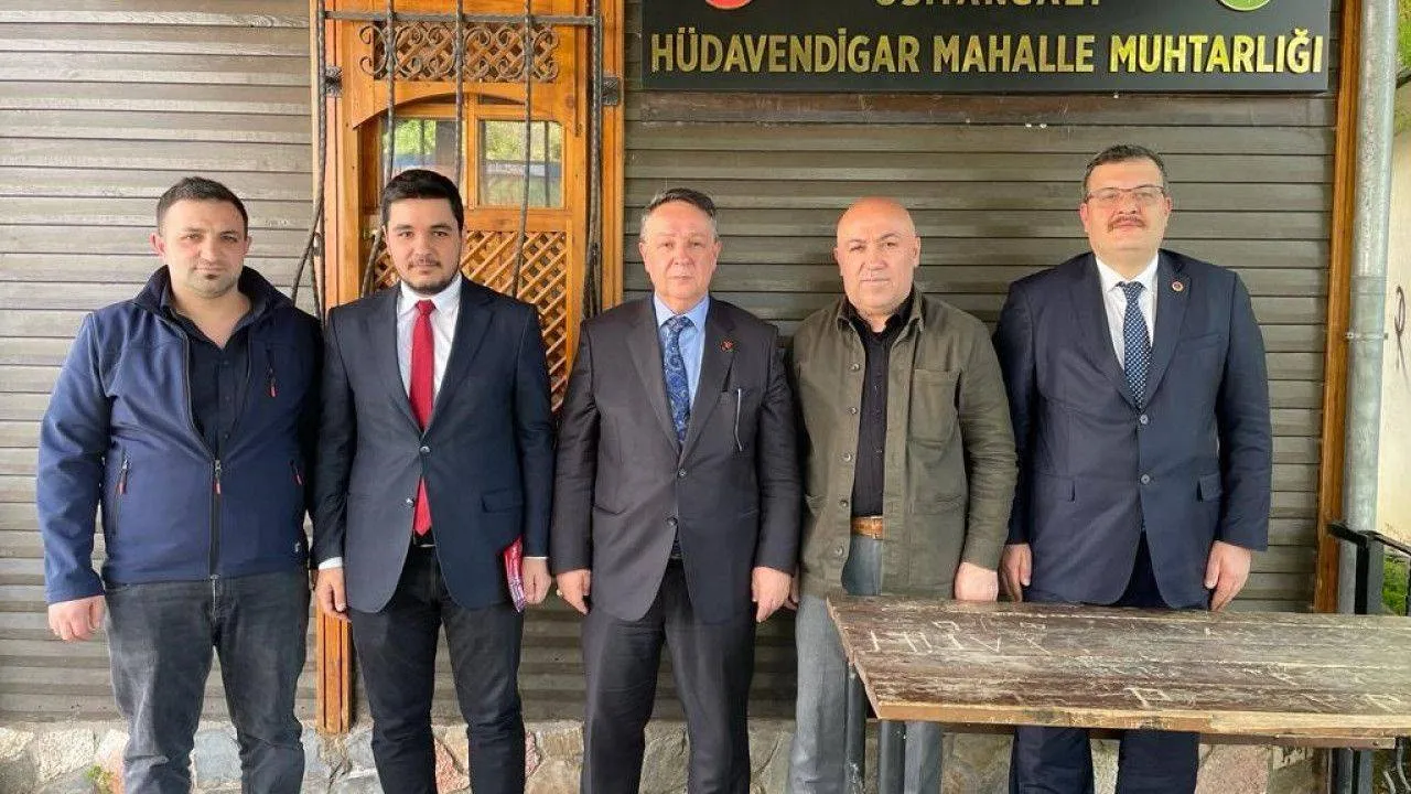 Esnaf ziyaretinin ardından Hüdavendigar Mahalle Muhtarı Mustafa Pala’yı muhtarlık binasında ziyaret eden Alfatlı ve arkadaşları Pala’ya çalışmalarında başarılar diledi.