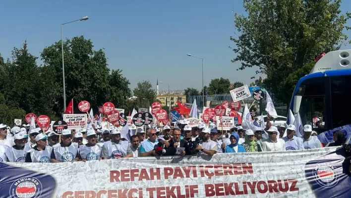 "Memur-Sen ve 11 yetkili sendikamızla 7. Dönem Toplu Sözleşmede masaya sunduğumuz gerçekçi tekliflerimize karşı, kamu işvereninin verdiği yetersiz teklifleri protesto ediyoruz. Kamu İşvereninin, masanın emek tarafının sesini duymadığını düşündüğümüz için 81 ilden sesimizi yükseltmek üzere bugün buradayız. Buradan, ‘sorunların çözüleceği yer toplu sözleşme masasıdır’ sözümüzü bir kez daha tekrar ediyoruz. Biz, 2 yıldır toplu sözleşme masasının toplanmasını, masanın dışında yapılan eksik ve yanlış düzenlemelerle bozulan gelir dağılımı adaletsizliğinin düzeltilmesini, sorunun bütün olarak görülmesini bekliyoruz. Maalesef kamu işvereni bizim beklentimizi ve teklifimizin haklılığını hala anlayabilmiş değil. Kamu İşvereni ilk teklifini 2 puan artırarak yüzde 25’e çıkarmıştır. Bu sorunlarınız çözülmesin, enflasyon baskınız devam etsin, maaş artışlarınızı enflasyon farkı belirlesin demektir. Teklif, bu haliyle, Merkez Bankasının 2024 enflasyon tahmininin 8 puan, 2025 için de enflasyon tahmininin 4 puan altında kalmıştır” ifadelerini kullandı.