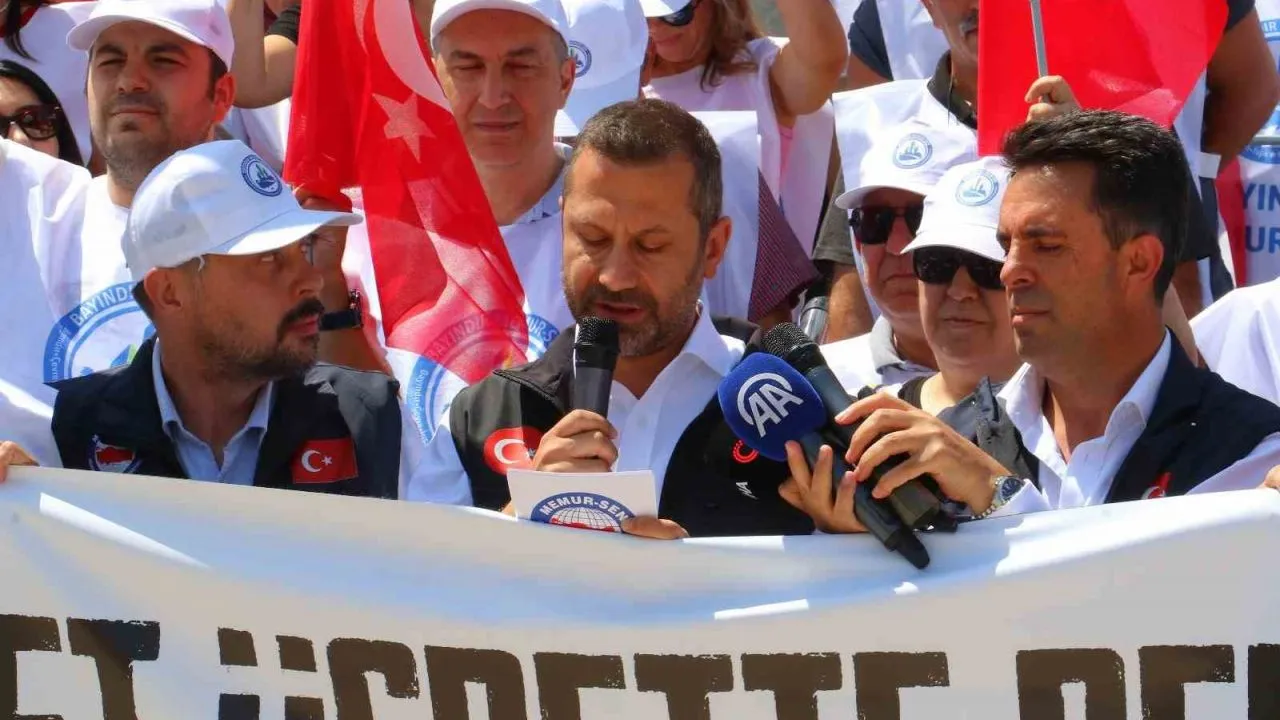 Eylemde bir açıklama yapan Memur-Sen Genel Başkan Yardımcısı Soner Can Tufanoğlu, memur ve memur emeklilerinin yüksek enflasyon altında ezilmemesi gerektiğini belirterek, "8. Dönem Toplu Sözleşme görüşmelerinde Kamu İşvereni’nin sunduğu teklife karşı ortak irademizi, sesimizi ve kararlılığımızı göstermek için buradayız. Artık meydanlarda olacağız ve sesimizin yettiği kadar haklı mücadelemizi haykıracağız. Kamu İşveren Heyeti’nin açıkladığı adaletten ve gerçeklerden uzak olan teklif; 2026 yılı için yüzde 10+6, 2027 yılı için ise yüzde 4+4 oranındadır ve bu teklif kabul edilebilir olmaktan çok uzaktır. Çünkü bu teklif refah payını yok saymakta, taban aylığa zam öngörmemekte, gelirde adaleti sağlamamakta, emekli ve emekçiyi koruyan bir anlayış taşımamaktadır. Kira artış oranının yüzde 41 olduğu bir dönemde yalnızca düşük enflasyon hedeflerine dayandırılmış bir zam önerisi, kamu görevlilerinin yaşadığı ekonomik sıkıntıları görmezden gelmektir" diye konuştu.