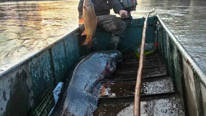 Edirne'de, Meriç Nehri'nde amatör balıkçıların ağına 2 metre boyunda 70 kilogramlık yayın balığı takıldı.