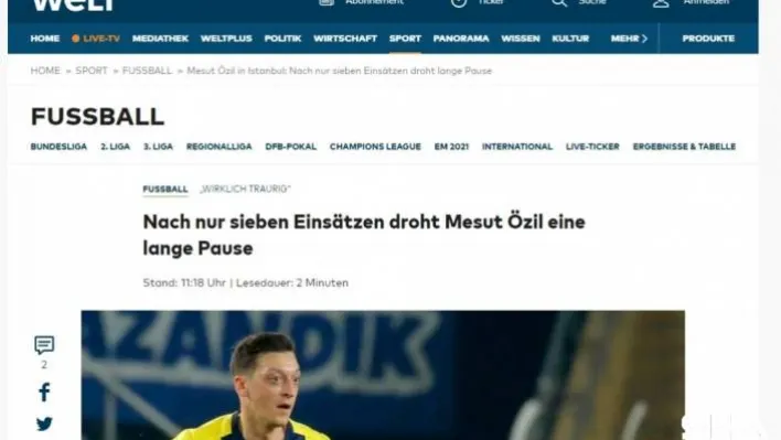Fenerbahçe-Antalyaspor maçında sakatlanan Mesut Özil'in haberleri dünya basınında yer aldı.