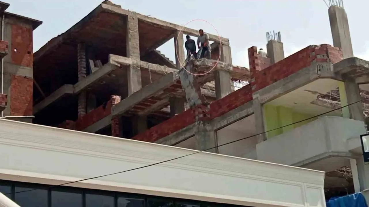 Metrelerce yükseklikteki inşaatta güvenlik önlemi almadan çalıştılar