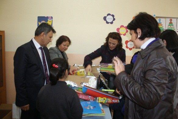 Toplanan yardımlar İlçe Milli Eğitim Müdürü İkram Kayapınar eşliğinde Okul Müdürü ve Rehber öğretmenlerle birlikte öğrencilere verildi.