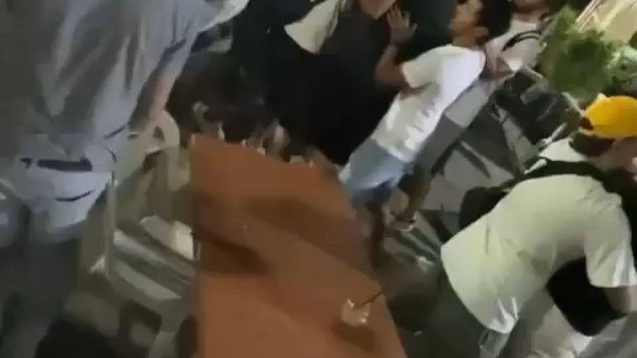 Bursa'da iki grup arasında çıkan ve tekme, yumruk ile sandalyelerin havada uçuştuğu meydan muharebesi gibi kavgada kameraya yansıdı.