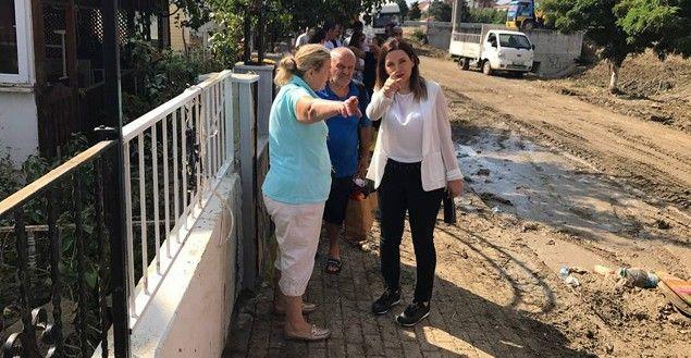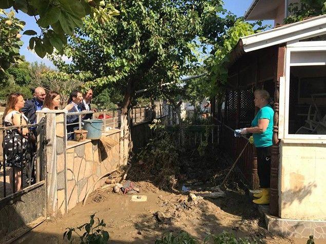 Sel felaketi sonrasında evlerini ve bahçelerini çamurdan arındırmaya çalışan, hasar gören eşyalarını çöpe atan vatandaşlarla sohbet eden heyet, mağdur vatandaşların sorun ve şikayetlerini dinlediler.