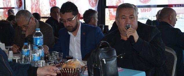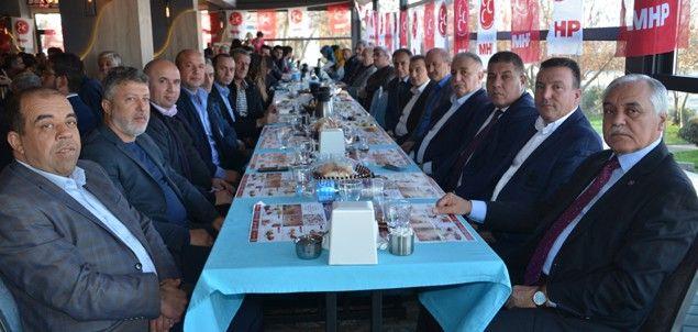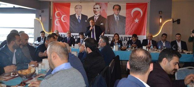 İlçe Başkanı Zafer Yalçın'ın selamlama konuşmasının ardından başlayan toplantıda MHP İl Başkanı Mehmet Bülent Karataş konuşmasında şu ifadelere yer verdi; “Bugün siz değerli Silivri ilçe teşkilatımızın tertiplemiş olduğu bu kahvaltıya katılımınızdan dolayı hepinize teşekkür ederim. İstanbulumuzun 39 ilçesinde iki aya yakın bir zamandır muhtarlarımızla, sivil toplum örgütlerimizle, meslek kuruluşlarımızla o bölgede yaşayan kanaat önderleriyle teşkilatımız ile bir araya gelme gayreti ve çabası içerisindeyiz. Bu gayretimize ve çabamıza ilçedeki davetlilerimizin hepsinden Allah razı olsun sizler gibi davetimize icap etmiş karşılıklı bir şekilde milletvekillerimizle, merkez yönetim kurulu üyelerimizle birlikte o ülkenin sorunlarıyla birlikte tartışmış sorunlarına çözüm üretmek amacıyla sohbetlerimizi genişletmişiz toplantılarda. Milliyetçi Hareket Partisi bu toplantıları gerçekleştirmesinin bir amacı bir gayesi vardır. Gittiğimiz toplantıların bazılarında uzun yıllardır hem genelde her yerel de iktidar olan bir siyasi partinin mensupları da vardır. Sorunlarını çözme iddiasıyla onların karşısına çıkmak çok iddialı oluyor. Diyorlar ki bizim, tanıdığımız, desteklediğimiz, sonuçta da yerelde ve genelde de iktidara getirdiğimiz bizim sorunlarımızı çözmedi de siz nasıl çözmeyi iddia ediyorsunuz dedi. Bizde dedik ki toplumsal olarak o bölgede yaşayan insanlarla birlikte demokratik hakkımızı kullanarak oradaki sorunu duymayanlara görmeyenlere işitmeyenlere duyurmak adına milletvekillerimize parlamentoda kamuoyu önüne çıkarıp vatandaşı ve hakkı ve muhalefeti yanımıza alarak vatandaşın sorununun çözülmesi adına bir katkıda bulunabilir miyiz dedim. Baktık ki milletvekillerimiz parlamentoda o bölgedeki muhtarların sivil toplum örgütünün sorunu haline gelen imar sorunu, iş sorunu, belediyenin çalışmalarda sorunu olabilir, barajlarla ilgili sorunlar olabilir bir baktılar ki bizim milletvekillerimiz parlamento da bunu gündeme getirdiler ve sonuçlandı. Milliyetçi Hareket Partisi bir karşılık beklemeden vatandaşının sorununu gidermek adına vatandaşıyla birlikte yola çıktığı için o sorunu gidermekten başka, çözümsüzlüğe çözüm gidermekten başka, gayreti olmadığını herkes gördü. Biz taraf olmadığımız için vatandaşın tarafında olduğumuz için bir beklenti sahibinde olmadığımız için Sultanbeyli’den, Sancaktepe’de, Üsküdar’da, Silivri’de ki çoğu mesele çözümlenmiş bulunmaktadır. Bölgelerdeki sorunların çözümlenmesi için Milliyetçi Hareket Partisinin çözümleri vardır. Bu toplantının ana sebebi hem muhtarlarımızla bir araya gelmek hem sivil toplum örgütleriyle bir araya gelmek, mezhep kuruluşlarının kanaat önderleriyle bir araya gelmek, Milliyetçi Hareket Partisinin duygu ve düşüncelerini onlarla paylaşmak kucaklamak ve birbirimiz tanımak adına bu toplantıyı gerçekleştiriyoruz. Milliyetçi Hareketin Yorumu nedir, istikameti nedir, hedefi nedir, düşüncesi nedir, direk milliyetçi hareket partili ve bu camianın yetkilileri tarafından duyurulması adına milletvekillerimle ve köylerimizle bu ilçelerde ki yapılarla bir araya gelip düşüncelerimiz aktarıyoruz. Milliyetçi Hareket Partisinin bir teşkilatı olarak ifade ediyorum ki, 48 yıllık şereflerle dolu geçmişin ve mazinin mücadele eden insanları hiçbir siyasi partiye yakınlaşmamış, hiçbir siyasi partiyle de uzaklaşmamıştır. Biz Türk Milletine sevdalı olan insanlarız, Türk milletine sevgimiz her zaman aynıdır, inançlarımız her zamana aynıdır değişmez değerlere sahibiz değişmez değerlerin sahipleri de milliyetçi toplumcu anlayışına sahip oldukları için Türk milleti toplumun kalkınmasını ortaya sergilemek adına bu toplantıları gerçekleştiriyoruz. İlçe Başkanım Zafer Başkan ve yönetimine siz değerli Silivrilileri bizlerle bir araya getirdiği için hepinize teşekkür ediyorum. Sizlere de burada bulunduğunuz için teşekkür ediyorum. ‘’dedi.