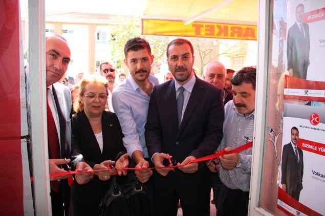Konuşmaların ardından açılış kurdelesi kesilerek, MHP Gümüşyaka Mahalle Teşkilatı seçim irtibat bürosunun açılışı yapıldı.